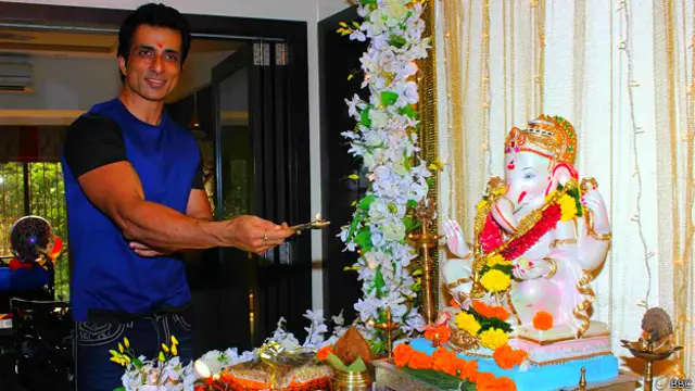काफी अर्से से फ़िल्मों से दूर रहे अभिनेता सोनू सूद ने भी अपने घर पर गणपति की स्थापना कर पूजा-अर्चना की.