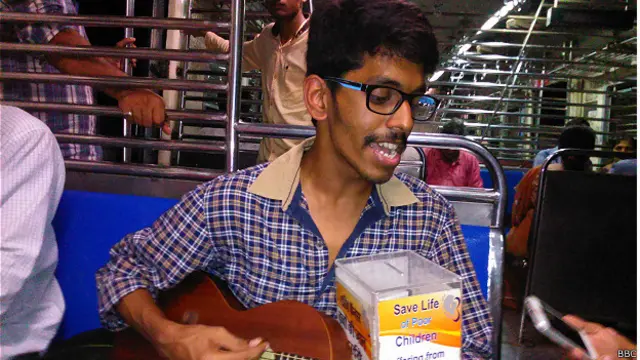 इतना कहने के बाद सौरभ एक डोनेशन बॉक्स निकालकर अपने सामने रख देते हैं और अपने गिटार पर बॉलीवुड के लोकप्रिय गानों की धुन बजाना शुरू कर देते हैं.