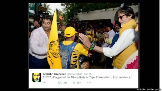 बॉलीवुड अभिनेता अमिताभ बच्चन ने रविवार को महाराष्ट्र सरकार के बाघ संरक्षण अभियान के समर्थन में आयोजित बाइक रैली को हरी झंडी दिखाकर रवाना किया.