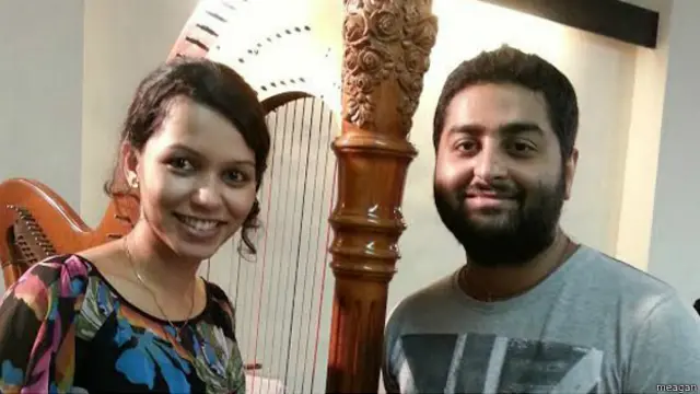 मिगेंन कहती हैं, "काफी मुश्किलों के बाद मेरे पती को पैडल हार्प एक महिला से मिला जो भारत से अपने घर फ्रांस वापस जा रही थी."
