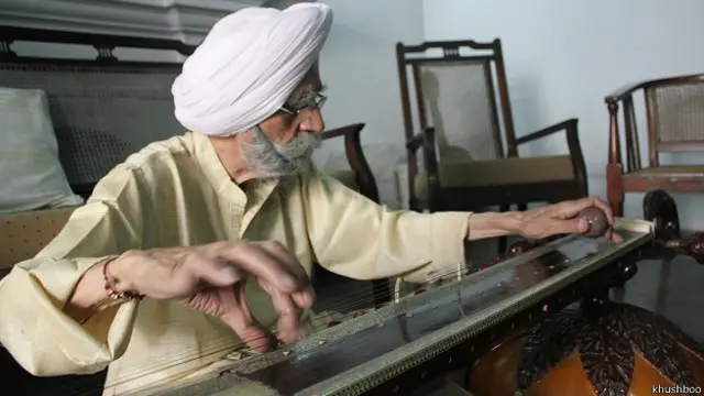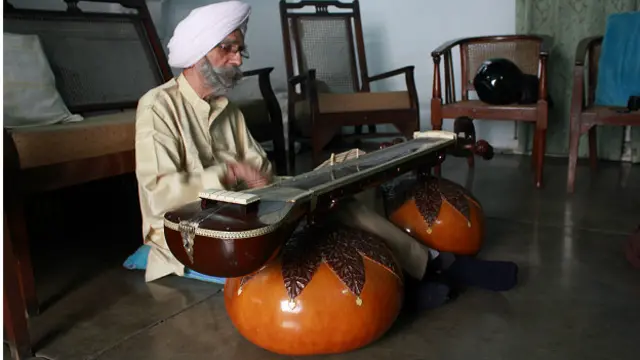 83 वर्षीय अजीत विचित्र वीणा बजाने में पारंगत है और वो कहते हैं, "हमारी एक वाद्य यंत्रों की दुकान है जो मेरे पुरखों के समय से है. विभाजन से पहले पाकिस्तान में मेरे पिता के एक मित्र इसे बजाया करते थे और वहीं से विचित्र वीणा मेरी ज़िंदगी में दाखिल हो गई."