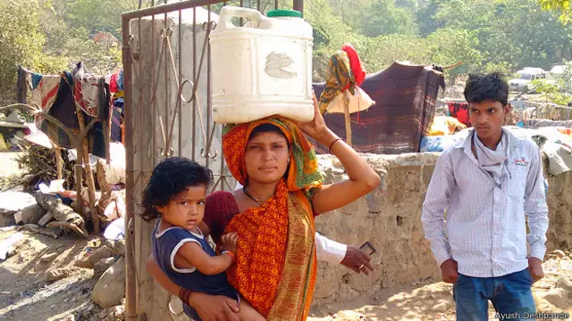 मुंबई के पश्चिमी घाटकोपर में मौजूद एक मैदानी इलाक़े भातवाड़ी में महाराष्ट्र के सूखाग्रस्त इलाक़ों से आए कई परेशान परिवार पिछले तीन महीने से जमे हुए हैं.