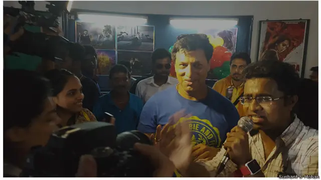 हॉल में फ़िल्म देखने आए निर्माता निर्देशक मधुर भंडारकर ने बीबीसी को बताया, “अरे बड़ा कमाल का मज़ा आता है फ़ैन्स के साथ फ़िल्में देखने में और मैं तो रजनी सर का फ़ैन हूं तो इसलिए मेरे लिए यहां फ़िल्म देखना और इंपोर्टेंट हो जाता है.”