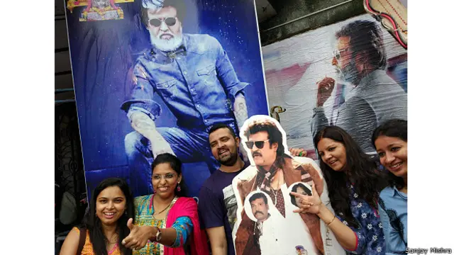 थिएटर के बाहर रजनी के फ़ैन्स की भीड़ सैकड़ों में थी और लोग जल्दी से जल्दी अगले शो के शुरू होने का इंतज़ार कर रहे थे.