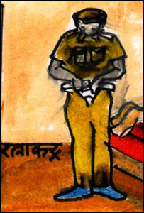 जब रात में एक बजे तुका दो कांस्टेबलों को जीप में ही बैठे छोड उपर आया तो उसने क्या देखा? बहू को छोड़ परिवार के तीनों सदस्य फ्लैट के बाहर उकडूं बैठे थे. गुमसुम बैठे थे. उनकी आँखों में नींद थी, चेहरों पर विवशता, मजबूरी. फ्लैट के बंद दरवाज़े के बाहर कांस्टेबल मुंगले तैनात खड़ा था. ‘क्या बात है?’ तुका ने पूछा,‘अंदर कौन है?’ वह चौंका,‘अंदर क्या कर रहे हैं?’ तभी उसे ख़याल आया...इस आवास में दो जवान लड़कियाँ भी रहती थीं. एक बेटी, जो इस समय किसी लेड़ीज बियर-बार में साक़ी बनी होगी. दूसरी बहू थी. वह कहाँ? उसने अचानक दरवाज़े पर लात जमाई. सिटकनी टूट गई. दरवाज़े की दोनों पाटें खुल गई. तुका ने देखा तो लड़की बिस्तर पर निढाल-सी लेटी थी. उसकी सलवार फर्श पर पड़ी थी. कुर्ता उलट कर चेहरे पर छाया था. मानो अभी-अभी सुनामी का कहर उसे चूमकर यहाँ से गुज़र गया था. दरवाज़ा धड़ाम से खुलने का असर लड़की पर तनिक भी नहीं हुआ. वह जस की तस पड़ी रही. वह जानती थी, इससे बुरा और क्या हो सकता है? यह पुलिसिया हफ्ते में एक बार आ जाता था. उसके शौहर, सास-ससुर सबको बाहर खदेड़ सांड की तरह चढ़ता था. अब यह दूसरा भी चढ़ेगा. फिर तीसरा...क्या फ़र्क़ पड़ेगा? लड़की दूसरी तूफान के आने का इंतज़ार खामोशी से करती रही. पर चौहान दम भर के लिए चौंक गया. उसने बेल्ट बांधते हुए मुस्कराने की कोशिश की. फिर हंस कर कहा,‘‘यार, तेरे में एक यही तो कमी है. सभी बातें जी पर लेता है.’ तुका के गले में हाथ डाल बाहर निकलते हुए उसने सफाई देनी शुरू की ‘कभी-कभी जानकारी उगलवाने के लिए दहशत बैठानी पड़ती है.’ कांस्टेबल मुंगले दोनों के पीछे-पीछे सीड़ियाँ उतर रहा था. तुका को यकीन नहीं हुआ तो चौहान ने सबूत पेश किए. ‘क्या तूने अख़बारों में कभी नहीं पढ़ा कि कश्मीर में हमारे जवानों ने कितने रेप किए? उत्तर पूर्व में तो ऐसी दहशत बैठ गई थी कि आतंकवादियों के पाँव ही उखड़ने लगे थे. अगर मणिपुर के महिला संगठनों ने आसाम राइफल के किले पर नंगी औरतों का जुलूस ले जाकर हंगामा नहीं किया होता तो-’ ‘लेकिन ये...ये सब ग़ैरकानूनी है.’
