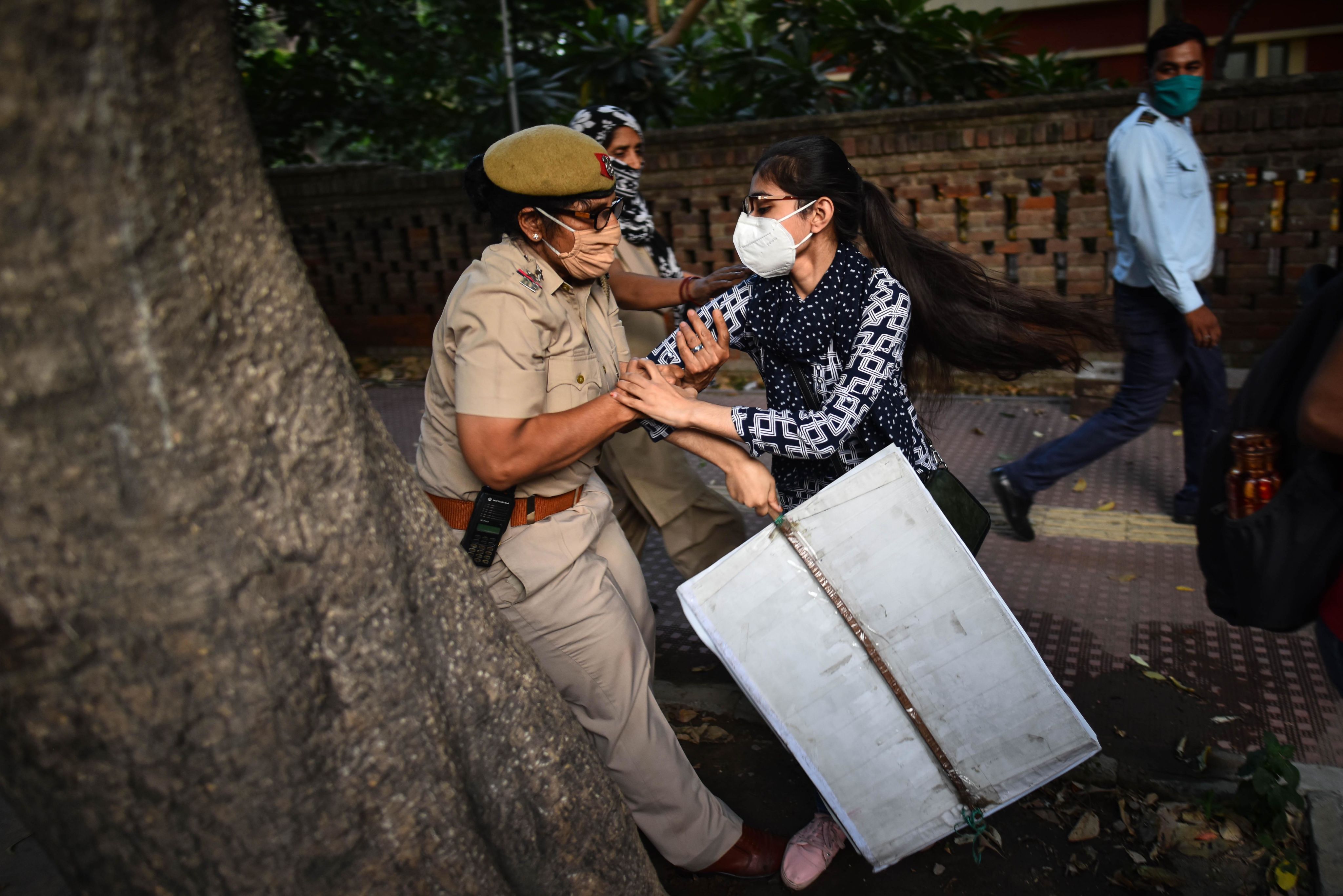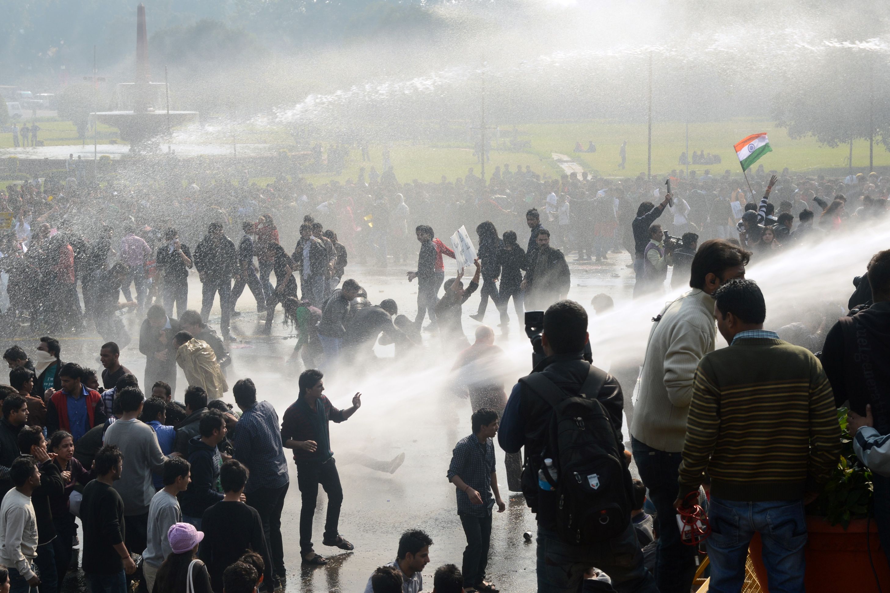 जब दिल्ली पुलिस के वॉटर कैनन की बौछार से बचने के लिए वो राष्ट्रपति भवन के सामने के लैम्प पोस्ट पर चढ़ गईं.
