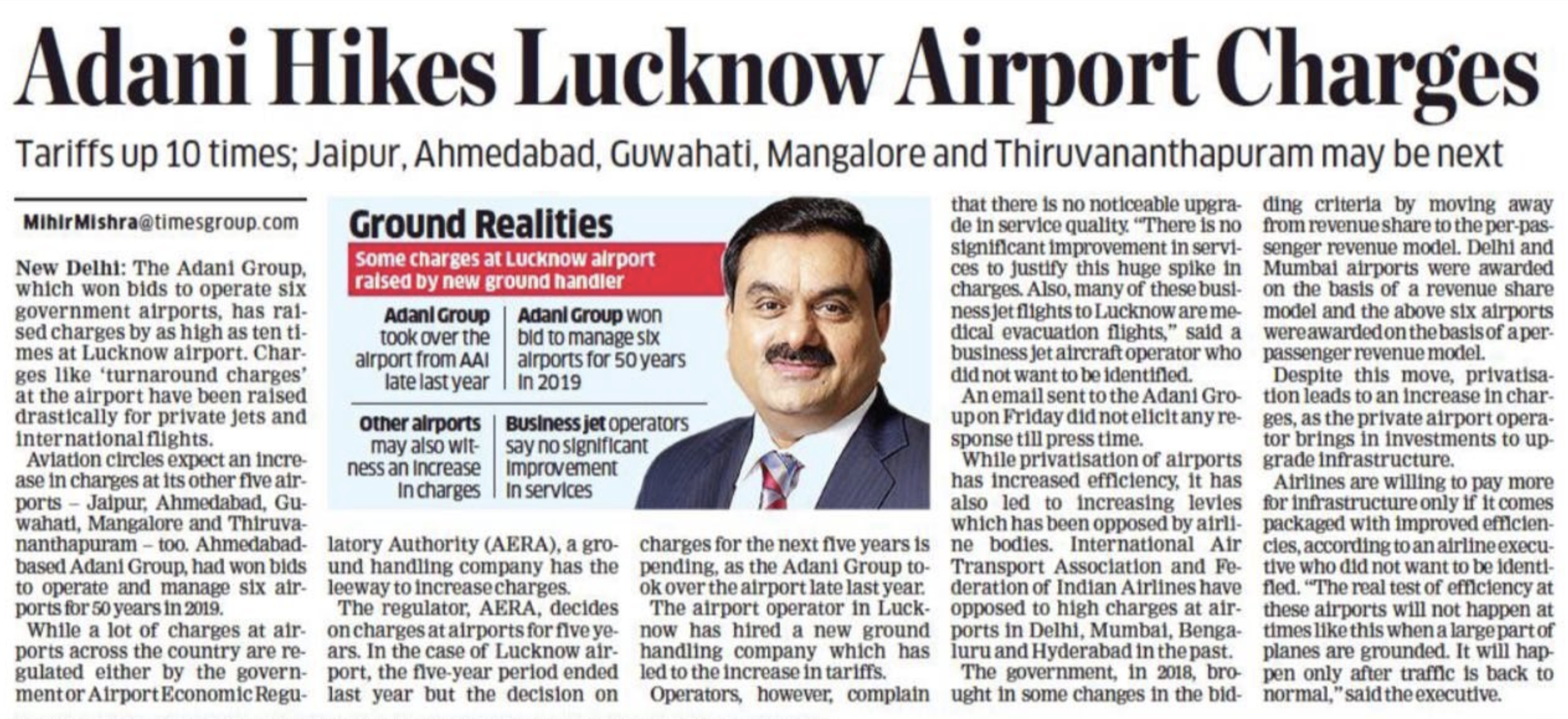 इन हवाई अड्डों के अधिग्रहण के साथ ही अदानी समूह एयरपोर्ट का संचालन करने वाली देश की तीसरी सबसे बड़ी कंपनी बन गई, जो GMR और GVK समूह से थोड़ा ही पीछे थी. और, बाद में GVK समूह से मुंबई अंतरराष्ट्रीय हवाई अड्डे का नियंत्रण हासिल करने के बाद, देश के हवाई अड्डों से आने जाने वाले मुसाफ़िरों के 25 फ़ीसद हिस्से पर अदानी समूह का क़ब्ज़ा हो गया. इसके अलावा अदानी समूह के हवाई अड्डों से होकर देश का 33 फ़ीसद एयर कार्गो ढोया जाता है.