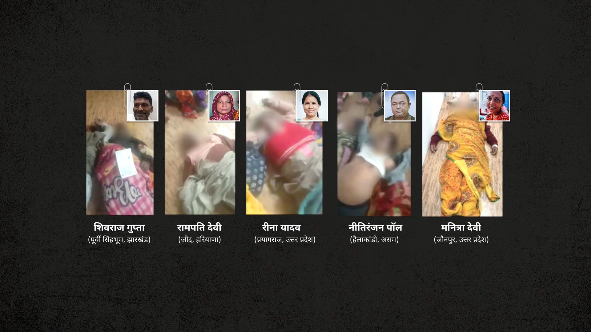 शिवराज के बगल में हरियाणा की रामपति देवी, प्रयागराज की रीना यादव, असम के नीतिरंजन पॉल और जौनपुर की मनित्रा देवी का शव रखा है.