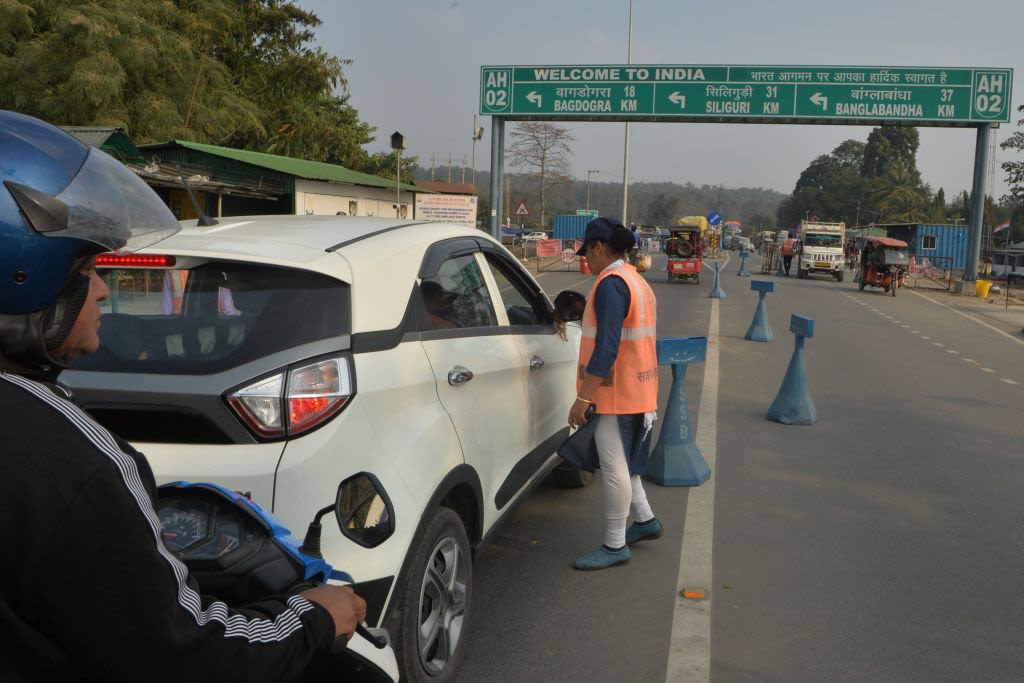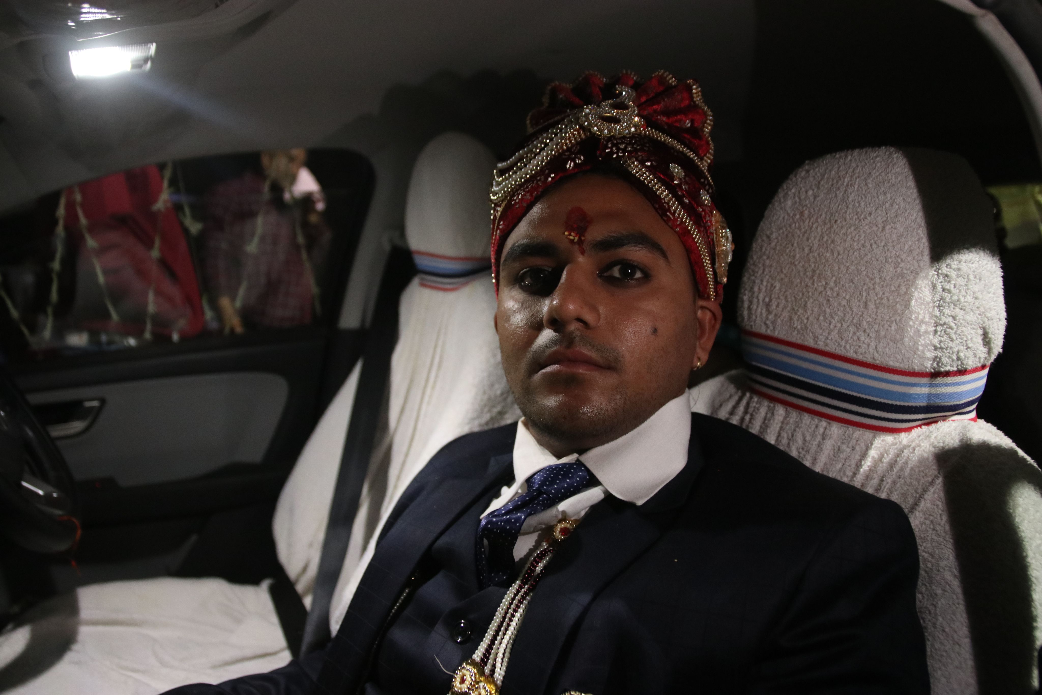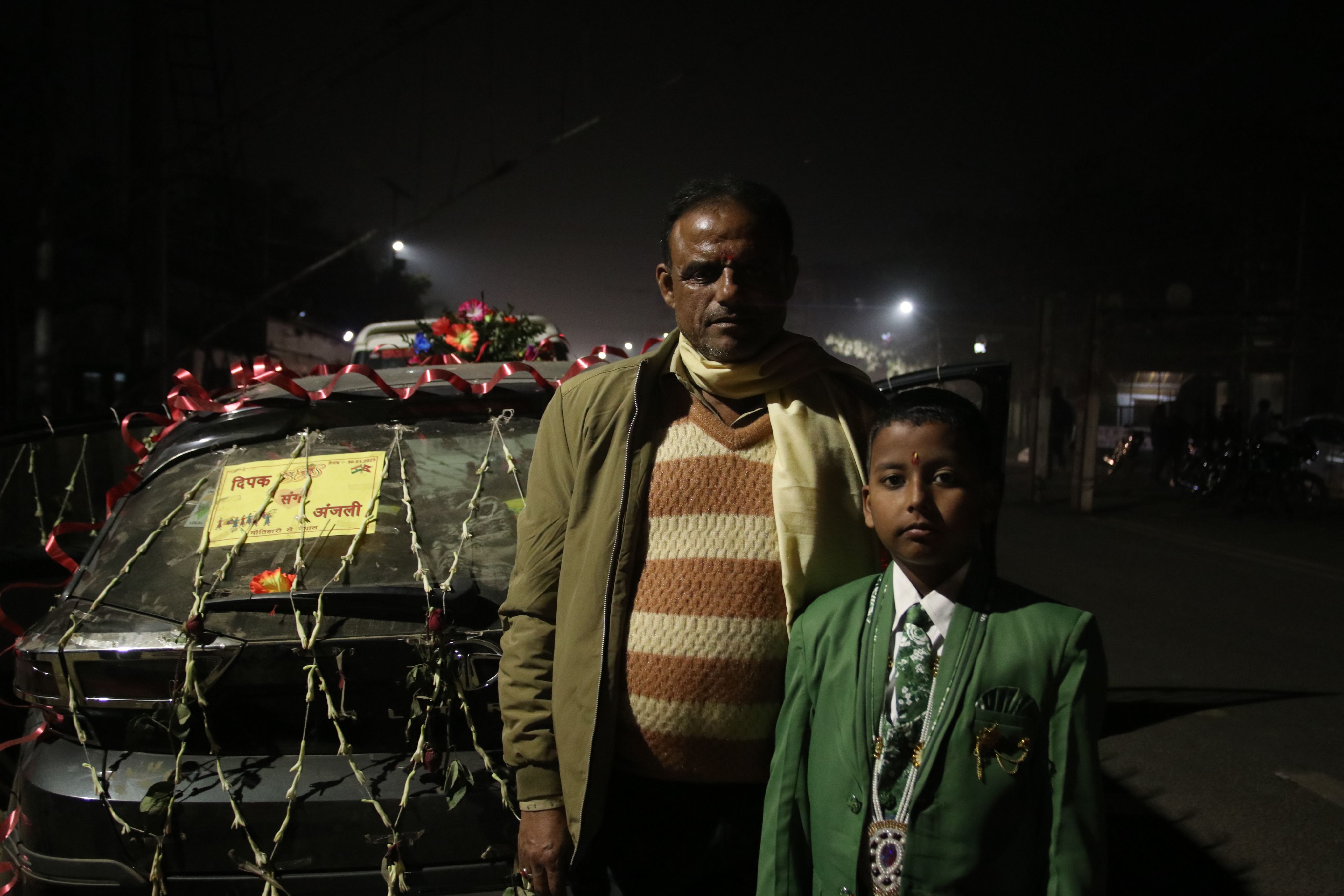 24 साल के दूल्हा दीपक गाड़ी में बैठे हैं और उनके पिता राजू प्रसाद नेपाल कस्टम विभाग में काग़ज़ी काम पूरा करा रहे हैं.