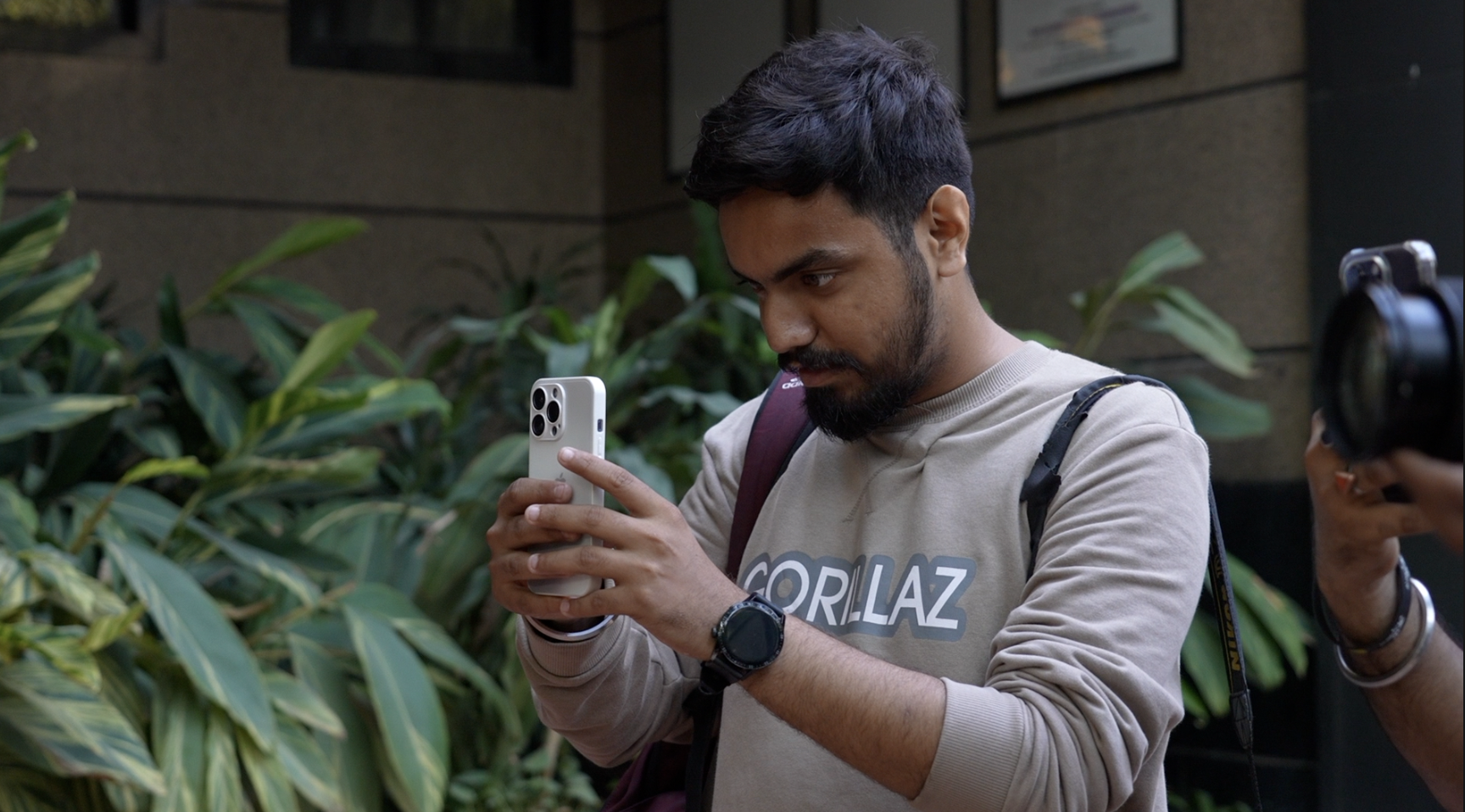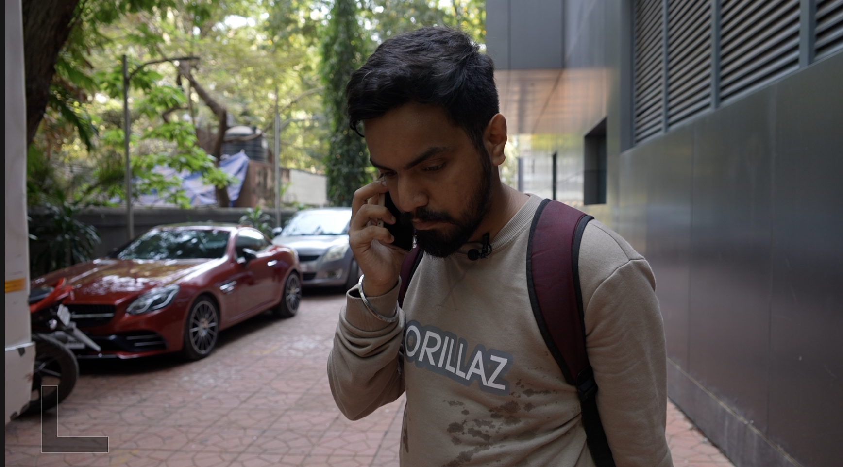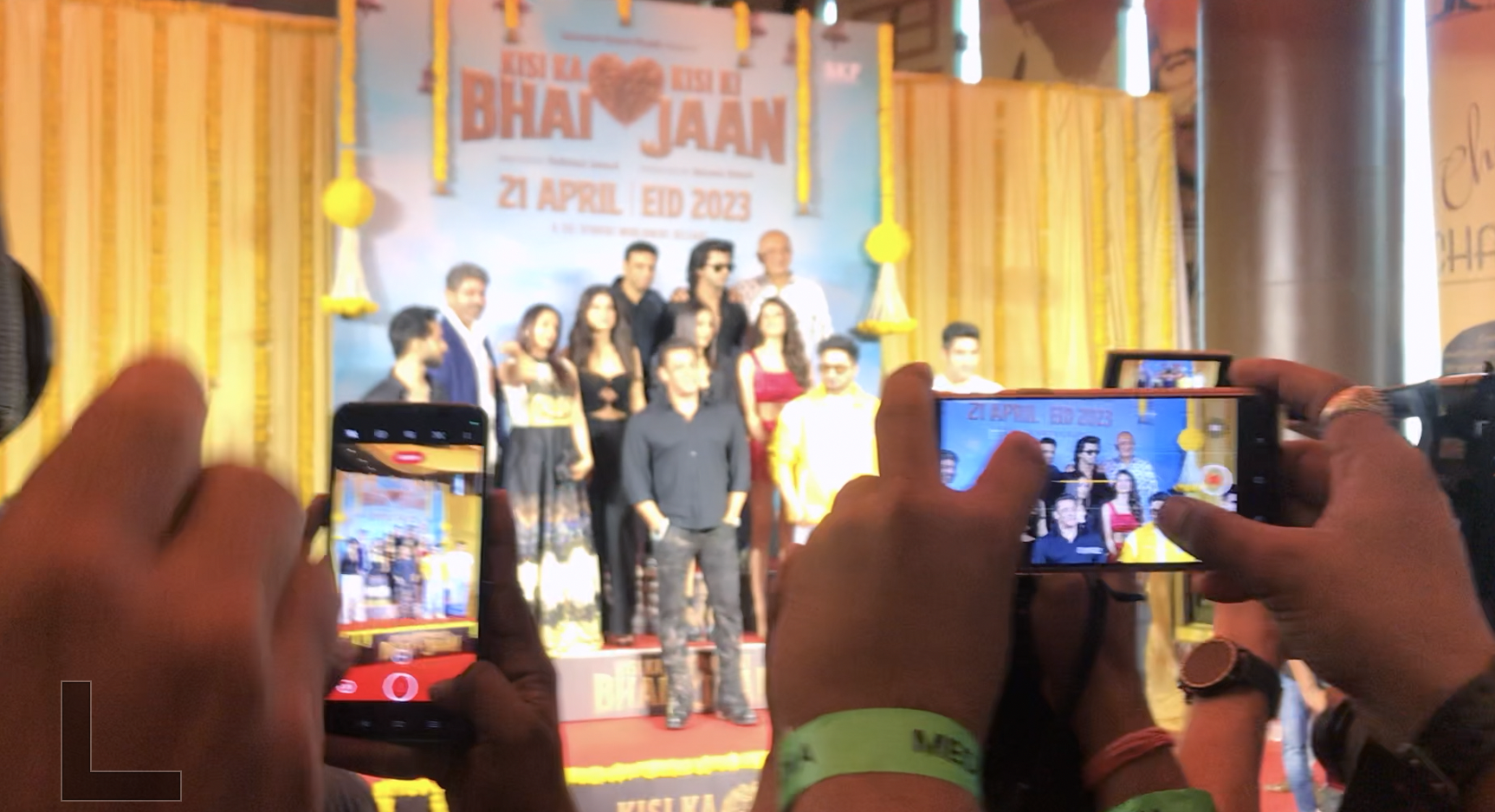 कुछ लड़के हाथों में फ़ोन और कैमरा लिए खड़े हैं. आसपास सलमान ख़ान की फ़िल्म 'किसी का भाई, किसी की जान' के पोस्टर लगे हैं.