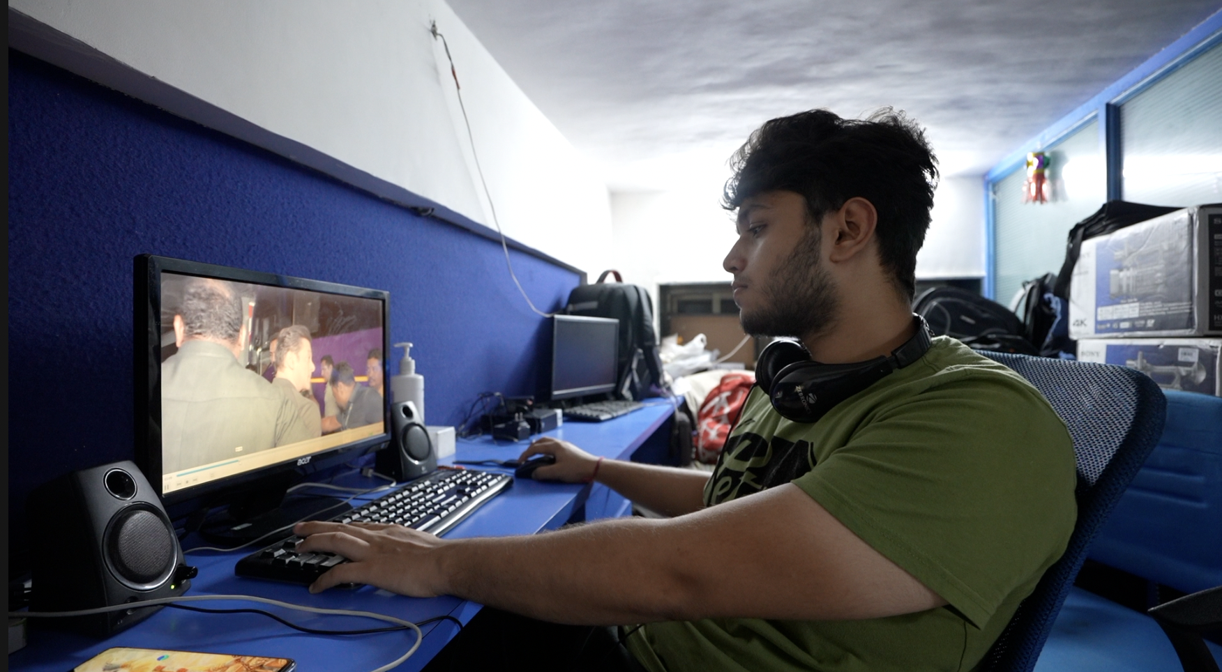 पैपराज़ी की भेजी तस्वीरें, वीडियो एडिट करते हुए एक वीडियो एडिटर, जगह- नसीम का दफ़्तर.