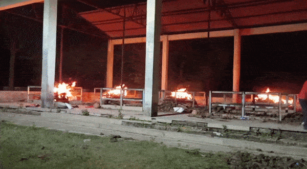 लगातार जलती चिताओं की तपिश का आलम ये था कि ऊपर लगा टिन शेड गर्म होकर से पिघल गया.