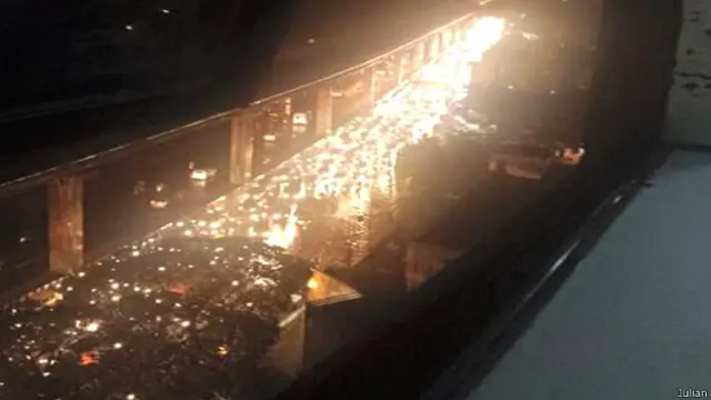 जुलियन को क़रीब सौ साथियों के साथ सोमवार रात अपने ऑफ़िस में गुज़ारनी पड़ी क्योंकि बारिश के पानी की वजह से उनको घर तक ले जाने वाली कारें ऑफ़िस तक नहीं पहुंच पाईं.