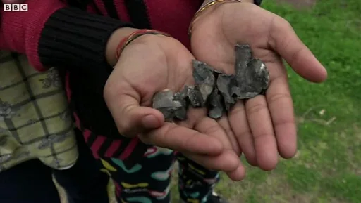 मैं उससे उन्हें फेंककर साबुन से हाथ धोने को कहती हूं. एक पुलिस अफ़सर ने बताया है कि इन टुकड़ों से रसायनिक गैस निकलती है जो ख़तरनाक हो सकती है.
