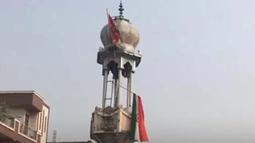 मगर जब हम यहां पहुंचे तो मस्जिद की मीनार पर तिरंगा और भगवा झंडा लगा हुआ पाया.
