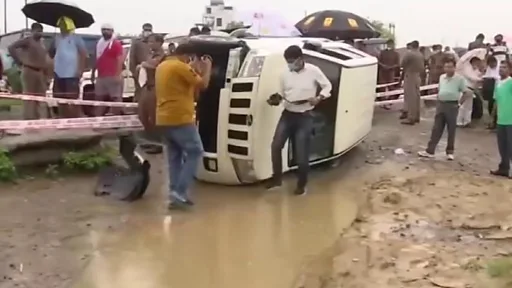 कानपुर के पास ही पुलिस की एक गाड़ी अचानक हादसे का शिकार होकर पलट गई. इस दौरान विकास दुबे ने हथियार छीनकर भागने की कोशिश की, जिसके बाद पुलिस को आत्मरक्षा में अभियुक्त को मारना पड़ा.