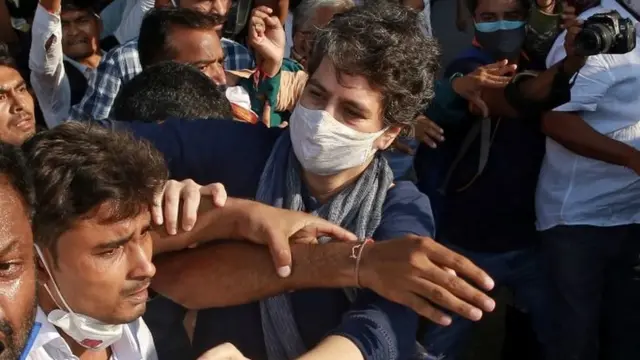 इसी समय की एक तस्वीर सोशल मीडिया पर वायरल हो गई जिसमें एक पुलिसकर्मी ने प्रियंका गांधी के कुर्ते को पकड़ रखा था.