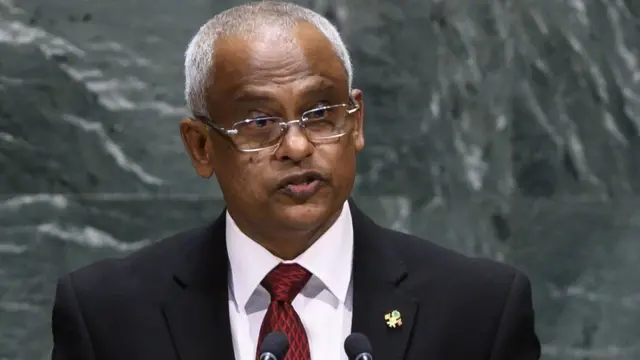 बुधवार को माले में उनके घर के बाहर एक बड़ा बैनर देखा गया था जिस पर लिखा था 'भारत बाहर जाओ'. कोर्ट के आदेश से गुरुवार को इसे उतार लिया गया.