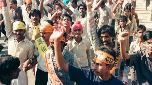 लोगों के जत्थे के जत्थे हाथ मे भगवा झंडे लेकर निकल रहे थे.