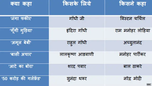 भारतीय राजनीति में असंसदीय छीटाकशियों और अपने प्रतिद्वंदियों के प्रति अपमानजनक टिप्पणियों का एक लंबा इतिहास रहा है. शायद इसकी शुरुआत आज़ादी से पहले तीस के दशक में हुई थी जब ब्रिटेन के प्रधानमंत्री विंस्टन चर्चिल ने गाँधी से अपने मतभेदों के चलते उनके लिबास पर अभद्र टिप्पणी करते हुए उन्हें ‘नंगा फ़कीर’ कहा था.