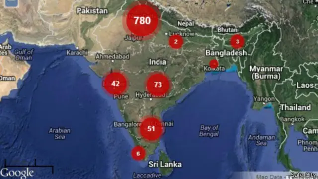 मसलन सेफ़सिटी पर हैदराबाद के 20 मामले दर्ज हैं. हैदराबाद से जुड़ी ज़्यादातर रिपोर्ट महिलाओं से छीना-झपटी और उनके पर्स-गहने चुराने से जुड़ी हैं जबकि मुंबई में दर्ज ज़्यादातर 53 घटनाएं यौन दुराचार और लोकल-ट्रेन में होने वाले यौन अपराधों से जुड़ी हैं.