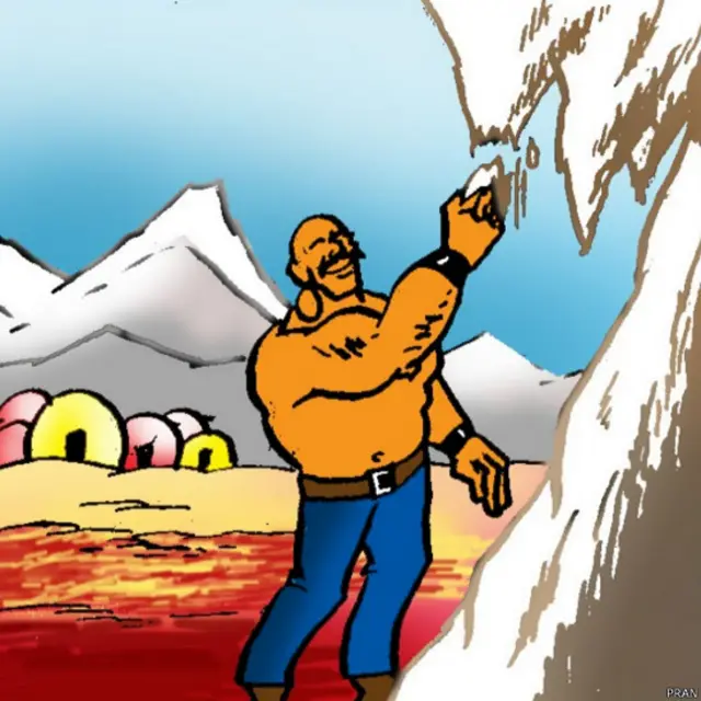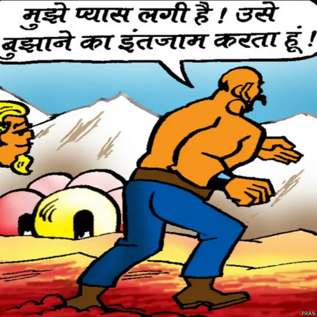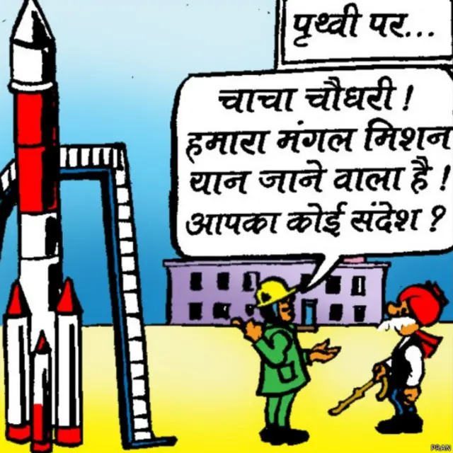 भारत में मंगल अभियान की उल्टी गिनती शुरु हो गई है. इस मौके पर मशहूर कार्टूनिस्ट प्राण ने अपने लोकप्रिय किरदार चाचा चौधरी और साबू को लेकर ख़ास बीबीसी के लिए एक नई कॉमिक स्ट्रिप तैयार की है. चाचा का साथी साबू जुपिटर ग्रह का निवासी था. सोचिए अगर साबू मंगल ग्रह पर होते तो क्या होता?