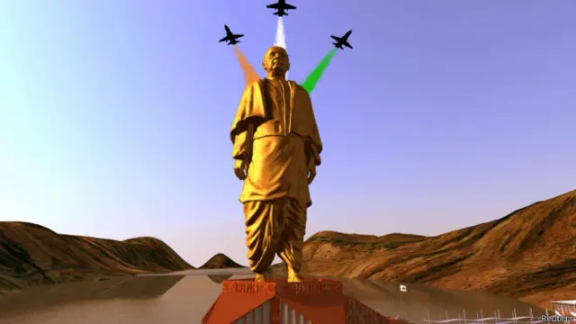 गुजरात में प्रस्तावित दुनिया की सबसे बड़ी प्रतिमा यानी सरदार पटेल की प्रतिमा की योजना की आधारशिला रखे जाने के दो हफ़्ते बाद बुधवार को बिहार में दुनिया के सबसे ऊंचे हिंदू मंदिर के मॉडल के अनावरण किया गया.