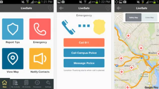इंसान की सुरक्षा के सवाल को हल करने के लिए निर्भया की तरह फ़ाइटबैक अपराधियों से निपटने और आपात स्थिति का सामना करने के लिए बनाई गई है. इसी तरह 'लिव सेफ़' और 'फ़्लिकरफ़्री' (ख़ासकर महिलाओं के लिए), गो सुरक्षित, सेंटिनल, सेफ़ब्रिज, वनटच एसओएस, आइएनई, आयफ़ॉलो, सेफ़ट्रैक जैसी ऐप्स के ज़रिए भी लोकेशन आधारित एसएमएस भेजकर आप आपात स्थिति में आपके अपनों को सूचित कर सकते हैं.