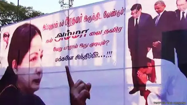तमिल पोस्टरों में जयललिता को अभी से 'प्रधानमंत्री पुरात्ची थलेवी अम्मा डॉक्टर जे. जयललिता' लिखा जाने लगा है. इनमें बड़े-बड़े विश्व नेता उनके सामने अदब से सिर झुका कर खड़े दिखाए जाते हैं. श्रीलंका के राष्ट्रपति महिंद्रा राजपक्षे तो घुटने टेके बैठे हैं. नीचे लिखा रहता है- प्रधानमंत्री ऐसा होना चाहिए. अम्मा के अलावा ऐसा और कौन हो सकता है?
