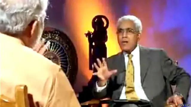 (वरिष्ठ पत्रकार करण थापर ने सीएनएन-आईबीएन के कार्यक्रम 'डेविल्स एडवोकेट' के लिए साल 2007 में नरेंद्र मोदी का साक्षात्कार किया था. हालांकि इंटरव्यू शुरू होने के महज़ साढ़े तीन मिनट बाद ही मोदी इंटरव्यू छोड़कर चले गए थे.)