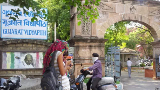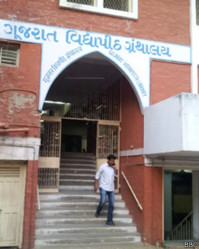 गुजरात विद्यापीठ की स्थापना ख़ुद महात्मा गाँधी ने 1920 में की थी. विश्वविद्यालय के इस कैंपस में महात्मा गाँधी की एक छाप साफ़ महसूस होती है. विश्वविद्यालय के वाइस चांसलर और रजिस्ट्रार अपने कमरे में कुर्सी मेज़ पर नहीं बल्कि ज़मीन पर गद्दी पर बैठते हैं और उनके सामने मेहमान भी यूँ ही बैठाए जाते हैं.