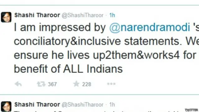 लेकिन अब भारत के प्रधानमंत्री बनने जा रहे नरेंद्र मोदी के भाषण से काफ़ी प्रभावित हैं शशि थरूर. उन्होंने ट्विटर पर ये बात लिखी है.