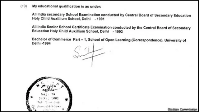 चुनाव आयोग को जमा किए अपने नामांकन पत्र में स्मृति ईरानी ने लिखा है कि वह बारहवीं पास हैं और उसके बाद उन्होंने 'स्कूल ऑफ़ ओपन लर्निंग' से कॉमर्स की एक साल की पढ़ाई पूरी की है.