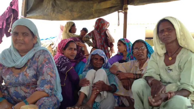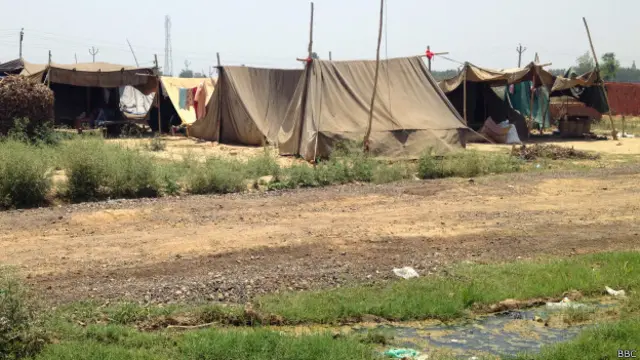 राज्य सरकार से मुआवज़ा मिला था तो लोगों ने यहां ज़मीन ख़रीदी है और उस पर तंबू लगाए हैं. पर चारों ओर झाड़ियां हैं, न बिजली आती है और न शौचालय का कोई प्रबंध है. पहले कड़ाके की ठंड काटी और अब तपती गर्मी से जूझ रहे हैं.