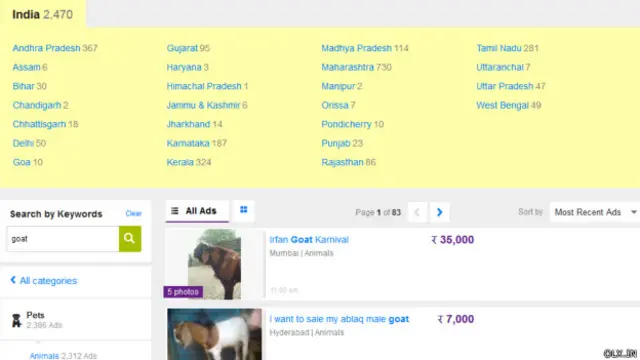 ओएलएक्स पर बकरों के क़रीब पांच हज़ार इश्तेहार हैं, जबकि क्विकर पर ये संख्या एक से डेढ़ हज़ार के बीच है.