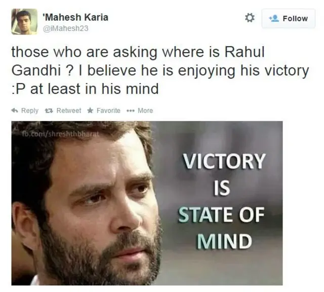 इस बार ‘व्हेयर इज़ राहुल गांधी?’ का सवाल उठाने वाली सात हज़ार ट्वीट किए गए, जिनमें से बहुतों में कार्टून भी शेयर किए गए हैं और कांग्रेस के 44 वर्षीय उपाध्यक्ष के बारे में अटकलें लगाई गई हैं.