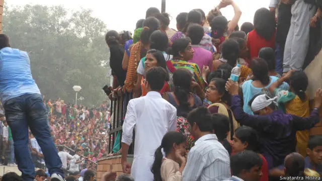 भारत की ओर दर्शक दीर्घा में दो हजार से ज्यादा नहीं बैठ सकते हैं लेकिन पाँच अक्तूबर की शाम कम से कम चार-पाँच हजार लोग बैठे थे. अंदर और बाहर मिलाकर 15-20 हजार लोग बॉर्डर पर पहुंचे हुए थे.