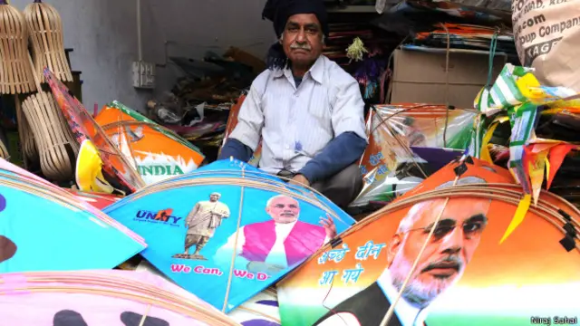 अहमदाबाद से अमृतसर तक और पटना से हैदराबाद तक, हर ओर नरेंद्र मोदी की तस्वीरों वाली पतंग बिक रही है.