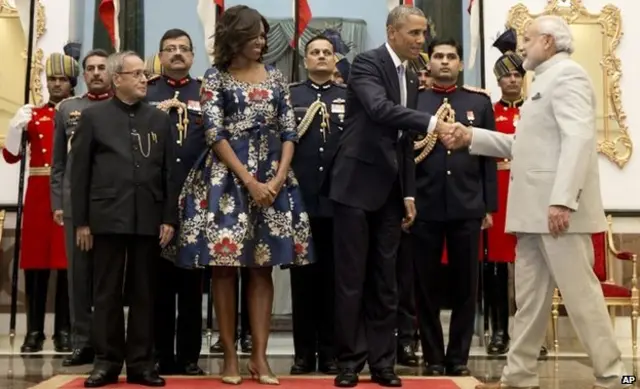 इसके अलावा दोनों नेता जिस तरीके से गले मिले, राष्ट्रपति भवन में आयोजित भोज में परोसा गया खाना और ओबामा की पत्नी मिशेल ओबामा की ड्रेस की भी लोग चर्चा कर रहे हैं.