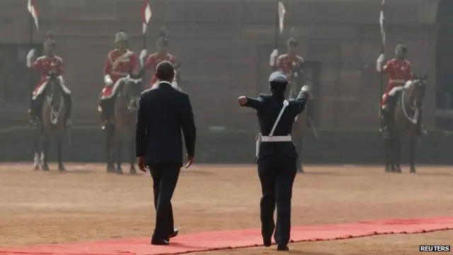 राष्ट्रपति भवन में बराक ओबामा के लिए आयोजित गार्ड ऑफ़ ऑनर का नेतृत्व भारतीय वायु सेना की विंग कमांडर पूजा ठाकुर ने किया. ऐसा करने वाली वो पहली महिला हैं.