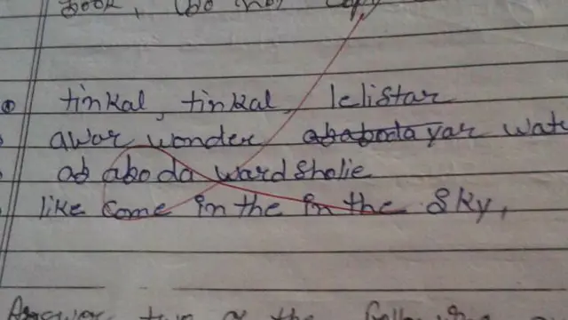 एक अन्य केंद्र पर अंग्रेज़ी की उत्तर पुस्तिका जांची जा रही थी. सवाल था अपनी पुस्तक से किसी कविता की चार लाइन लिखो. एक छात्र ने नर्सरी राइम 'ट्विंकल ट्विंकल लिटिल स्टार' की चार लाइनें अपने ही अंदाज़ में लिख दीं.
