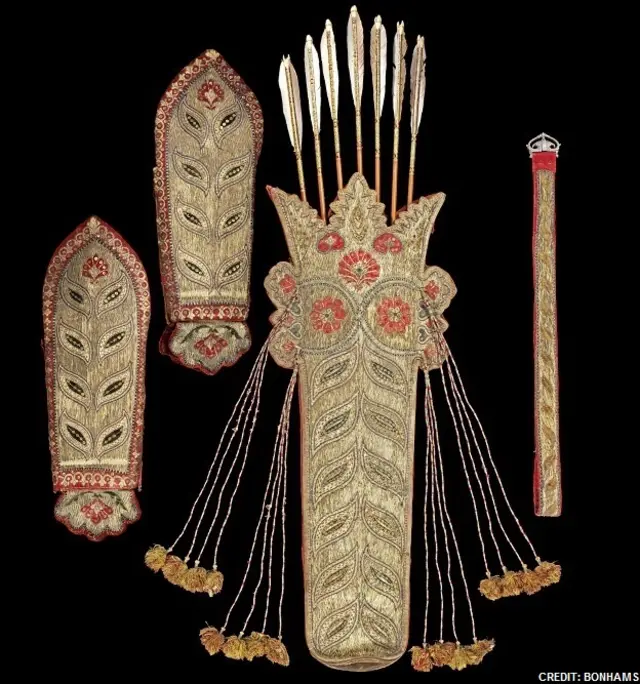 नीलाम घर बॉनहैम्स ने मंगलवार को टीपू सुल्तान से जुड़ी चीज़ें नीलाम कीं, जिनमें रत्न जड़ित मूठ वाली तलवारें, नक्काशीदार तरकश, खूबसूरत लोहे के टोप, बंदूकें, निशानेबाज़ी में काम आने वाली बंदूकें, पिस्टल, कांसे की तोपे भी हैं.