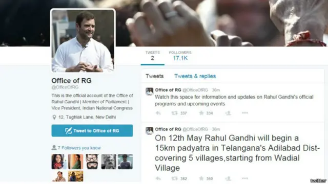 ट्विटर पर @OfficeOfRG नाम से एक अकाउंट बुधवार को ही शुरू हुआ है जिसमें कहा गया है कि इस हैंडल से राहुल गांधी के आधिकारिक कार्यक्रमों के बारे में जानकारी दी जाएगी.