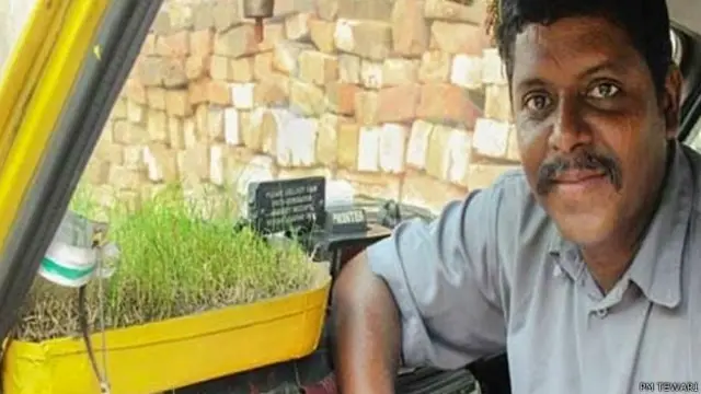 पीले रंग की इस पारंपरिक टैक्सी में आखिर ऐसी क्या खास बात है? इसमें खास है टैक्सी में चलता-फिरता बागान और इसमें लगे हरे पौधे.