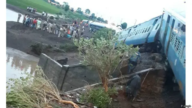 इधर नई दिल्ली में रेलवे प्रवक्ता अनिल सक्सेना के मुताबिक़, ''पटरियों पर पानी था और पुल डूबा हुआ था. इस वजह से कामायनी एक्सप्रेस के आख़िरी छह डिब्बे पटरी से उतर गए. लगभग उसी समय दूसरी पटरी पर जनता एक्सप्रेस का इंजन और चार डिब्बे भी पटरी से उतर गए.''