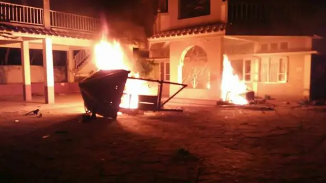 मंत्रियों के कर्मचारी आग लगाए जाने के बाद बच निकलने में कामयाब हुए .
