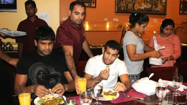 भारतीय युवाओं के बीच भले ही अमरीकी फ़ास्ट फ़ूड ख़ूब लोकप्रिय हो, लेकिन भारतीय पहलवान अमरीका में होते हुए भी तड़का, शाही पनीर और रायते को नहीं भूल पा रहे हैं.