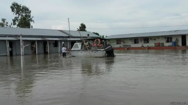 धुबड़ी ज़िले से सटे भारत-बांग्लादेश अंतरराष्ट्रीय सीमा पर बनी सीमा चौकियों में बाढ़ का पानी घुस जाने से बीएसएफ जवानों को भारी मुश्किलों का सामना करना पड़ रहा है.