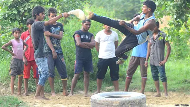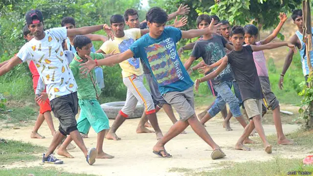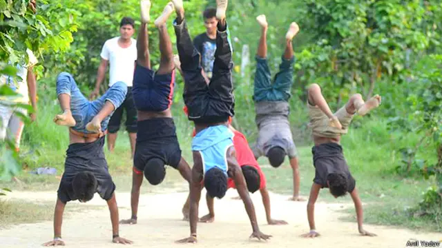 यहां दलित और पिछड़े परिवारों के क़रीब 40 लड़के देसी स्टाइल के कोच सोनू रावत से जिम्नास्टिक्स की ट्रेनिंग लेने आते हैं. साथ ही डांस और मार्शल आर्ट्स की भी प्रैक्टिस चलती है.