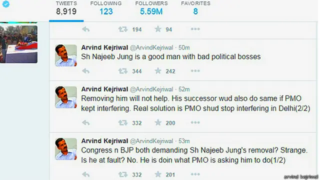 केजरीवाल ने ट्वीट किया, "कांग्रेस और भाजपा दोनों ही जंग को हटाना चाहती हैं? आश्चर्य की बात है. क्या वह गलत हैं? नहीं. वह वही कर रहे हैं जो पीएमओ उनसे करने को कह रहा है."